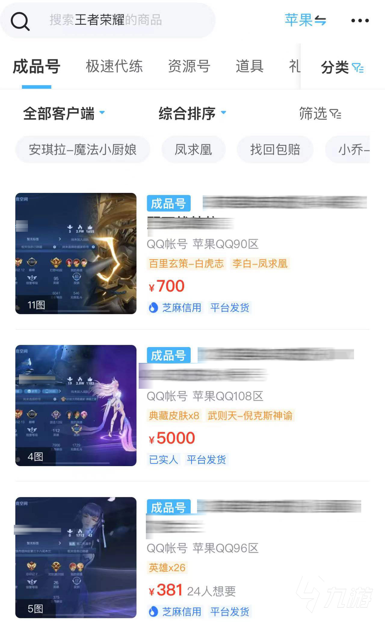 王者榮耀超強(qiáng)賬號(hào)的定義有很多種,例如貴族等級(jí)高,又或者積分、金幣多,讓你可以自己抽取各種皮膚和英雄,又或者賬號(hào)的段位很高,并收獲了很多榮譽(yù),都是可以彰顯你的價(jià)值身份的東西。無(wú)論是什么類型的超強(qiáng)賬號(hào),都可以交易貓里面找到它們的影子。