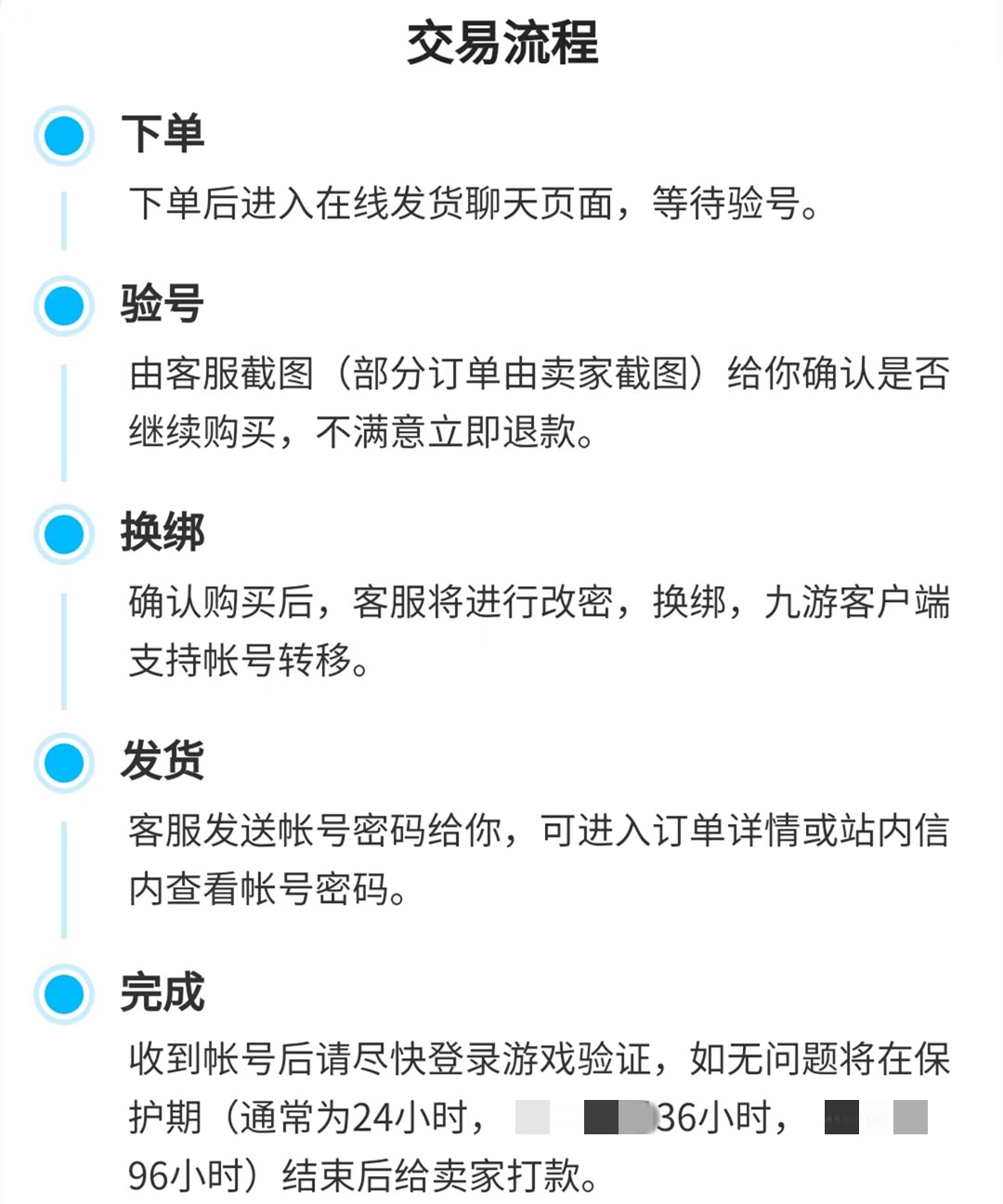 當(dāng)買(mǎi)家下單后,你的賬號(hào)是有平臺(tái)發(fā)貨,并且交易貓平臺(tái)會(huì)幫助完成整個(gè)交易流程,在對(duì)方登錄游戲驗(yàn)證之后,并且沒(méi)有其他問(wèn)題的情況下,平臺(tái)會(huì)在保護(hù)期結(jié)束后快速打款給你,不用擔(dān)心出現(xiàn)收不到錢(qián)的情況。