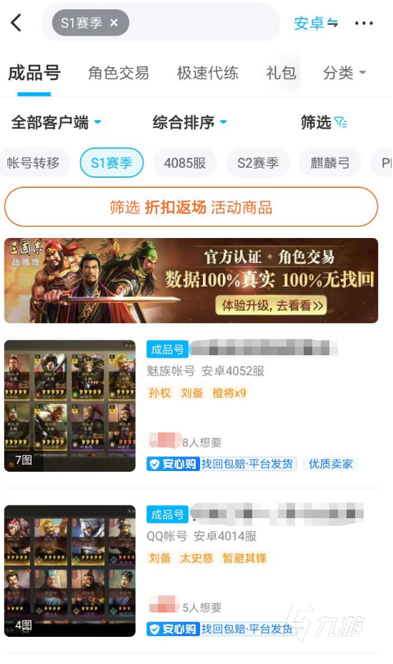 1、玩家們首先要做的則是,在三國志戰(zhàn)略版的專區(qū)當中,選擇一個S1賽季的標簽即可。隨后大家得到的交易內(nèi)容將非常的精準,當前可以直接購買的相關(guān)游戲號會直接呈現(xiàn)在各位眼前,玩家只需根據(jù)要求去進行挑選即可。