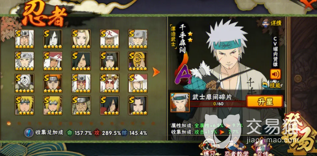 火影忍者作為四大民工漫之一,熱度自然是沒的說,很多玩家之所以入坑也是因為動漫的影響力,玩家抽取自己喜歡的強力角色,并培養(yǎng)起來運用到戰(zhàn)斗中去。有些玩家想跳過肝材料的過程,就打算在網(wǎng)上直接入手退坑大佬留下的賬號,買家玩的舒心,賣家也拿到了自己想要的貨款。購買這類游戲賬號大家可以去交易貓平臺看看,里面的游戲種類非常全面,除了手游以外,一些熱門端游也可以搜索到哦。