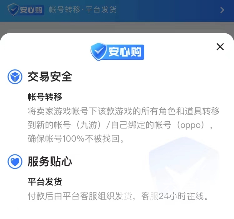 線上交易的話繞來繞去都離不開安全這兩個字,很多小伙伴沒有什么概念,但是安全肯定最重要了。交易貓給大家的安全服務就是安心購了,但是不是所有商品都有的,這一點還是需要了解到的。但是小編可以這么說,只要是買了安心購服務的商品,大家后續(xù)發(fā)生的售后就不愁了,再也不用擔心賣家找回賬號或是賬號與上架商品不符等情況,非??孔V。