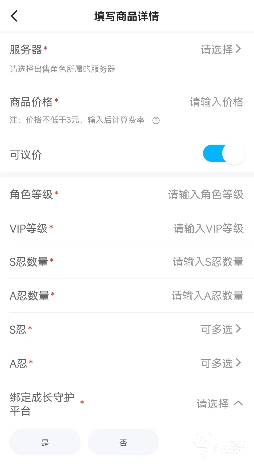 為了能夠提高交易速度,同時在價格上盡量做到符合自己的期望,平臺提供了非常詳細(xì)的展現(xiàn)模板,在上架的時候就可以通過自己填寫的方式來將賬號中所擁有的頂級忍者數(shù)量和戰(zhàn)力指數(shù)以及VIP等級等填寫清楚,這樣有利于制定一個非常合理的出售價格。如果對價值方面不熟悉,可以參考平臺中上架的其他相似商品,借鑒別人的定價也能做到心中有數(shù)。