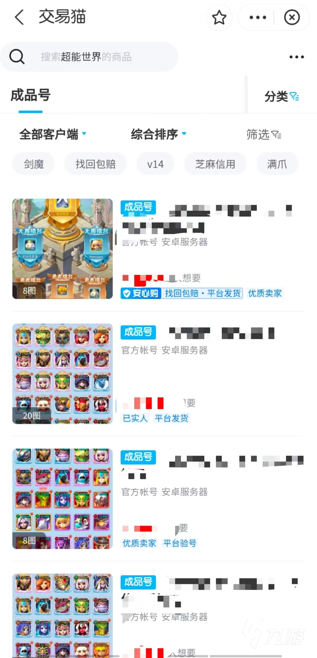交易貓是國內(nèi)最大的游戲賬號(hào)交易平臺(tái)之一,這里聚集了大量超能世界的賬號(hào),并且種類也十分的豐富,有些賬號(hào)擁有頂級(jí)道具,有些賬號(hào)屬于超能世界的頂級(jí)賬號(hào),還有一些賬號(hào)較為均衡,價(jià)格親民,大家在使用交易貓購買賬號(hào)前,需要先做一個(gè)初步的選擇。