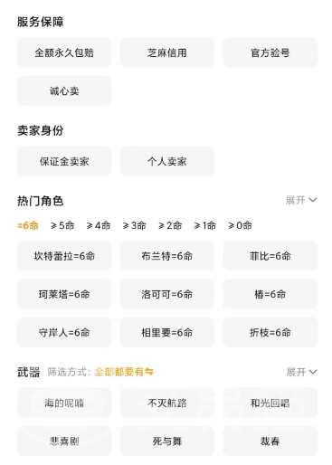 此外大家還可以巧用平臺(tái)商品豐富的優(yōu)勢(shì),直接通過搜索和你的賬號(hào)比較相像的賬號(hào),去對(duì)比得到準(zhǔn)確的價(jià)格。比如通過篩選,你可以選擇等級(jí)情況,角色情況等,馬上就會(huì)為你送上相匹配的商品,所以很省事哦。