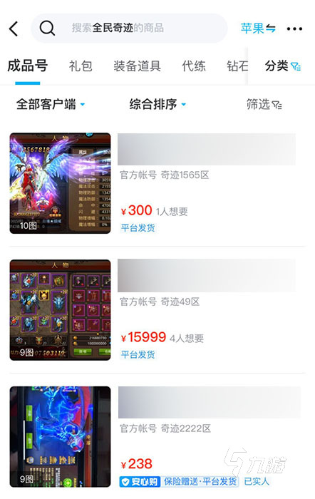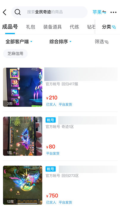 3、賬號購買安全有保障。全民奇跡手游備受玩家們青睞,賬號購買需求大。玩家們選擇合適賬號,不用耗費多余時間練號。平臺提供平臺直接發(fā)貨、免費驗號、芝麻信用授權、優(yōu)質賣家等認證。