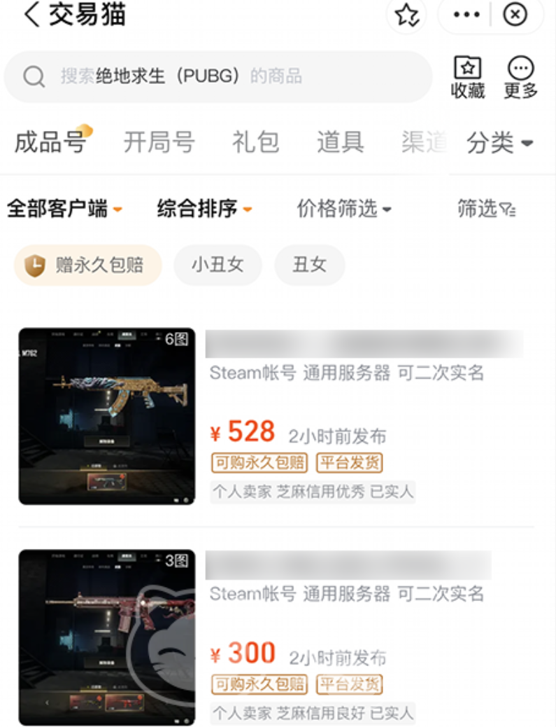 安卓玩家直接點(diǎn)擊上方按鈕下載正版官方交易貓,ios蘋果玩家可以前往瀏覽器搜索交易貓進(jìn)入官網(wǎng)即可體驗(yàn)。不管你是想花最少的錢玩游戲的普通玩家,還是對游戲賬號有特別要求的資深玩家,交易貓都能滿足你。交易貓上有好多pubg小白號,這些小白號來源廣泛,涵蓋了各種不同的渠道,確保了賬號的多樣性。平臺上的賬號庫存不斷更新,每天都有新的選擇供買家挑選。而且,app還對賬號進(jìn)行了細(xì)致的分類和篩選,方便買家快速找到心儀的小白號。你可以根據(jù)價(jià)格區(qū)間進(jìn)行篩選,從經(jīng)濟(jì)實(shí)惠型到高端豪華型,滿足不同預(yù)算的需求