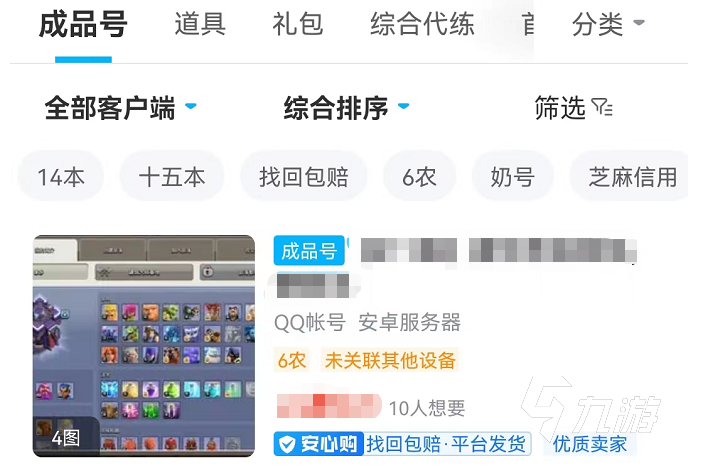 今天小編給大家推薦的買號平臺是交易貓,在這里我們能看到完整的價格表,玩家們只需要在首頁搜索部落沖突,進入游戲?qū)^(qū)之后就能看到不同的賬號資源,價格也是很清晰的,玩家們?nèi)绻行睦韮r位的話也可以直接篩選,能看到不同賬號的價值,快速購買。