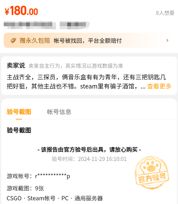 3、官方驗號,促成下單。在上架的時候可勾選官方的驗號服務,屆時會在商品的詳情頁生成一份官方認證的驗號報告,更高的可信度將吸引玩家下單,從而促進交易的完成。如果有買家拍下,將由平臺24小時服務的交易員協(xié)助發(fā)貨,經交易員進行上號截圖驗號,在工作時間還會協(xié)助極速解綁郵箱與密保等。賣號不用親自操作交易,解放雙手省心省力,交易完成就能坐等收款。