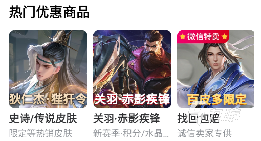 在王者專區(qū)里面,玩家們還可以看到各種高性價比賬號和各種限時優(yōu)惠的高級成品號推薦頁面,資金不是很寬裕的小伙伴們可以多逛一逛這些頁面,說不定那一天就在里面發(fā)現(xiàn)了一個物美價廉的賬號。