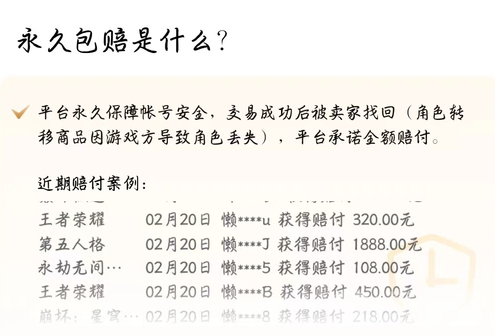 購買期間,如果大家所選的游戲賬號商品附贈永久包賠服務(wù)的話,那大家還會獲得一個長期的賬號保障,在保障時間內(nèi)如果賬號遇到了盜號、凍結(jié)等問題,那都可以聯(lián)系平臺來解決,平臺在核實后會給到相應(yīng)的賠付。