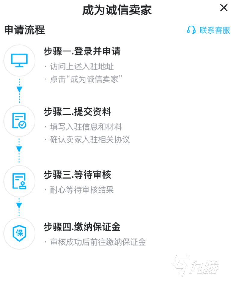 2、在賣家身份的開通方面,系統(tǒng)會直接提示詳細(xì)的認(rèn)證步驟,用戶需要將自己的入駐信息全部錄入 ,接下來只需要等待平臺的客服審核即可。其實整個流程非常的簡單,大家也不會消耗掉過多的時間。