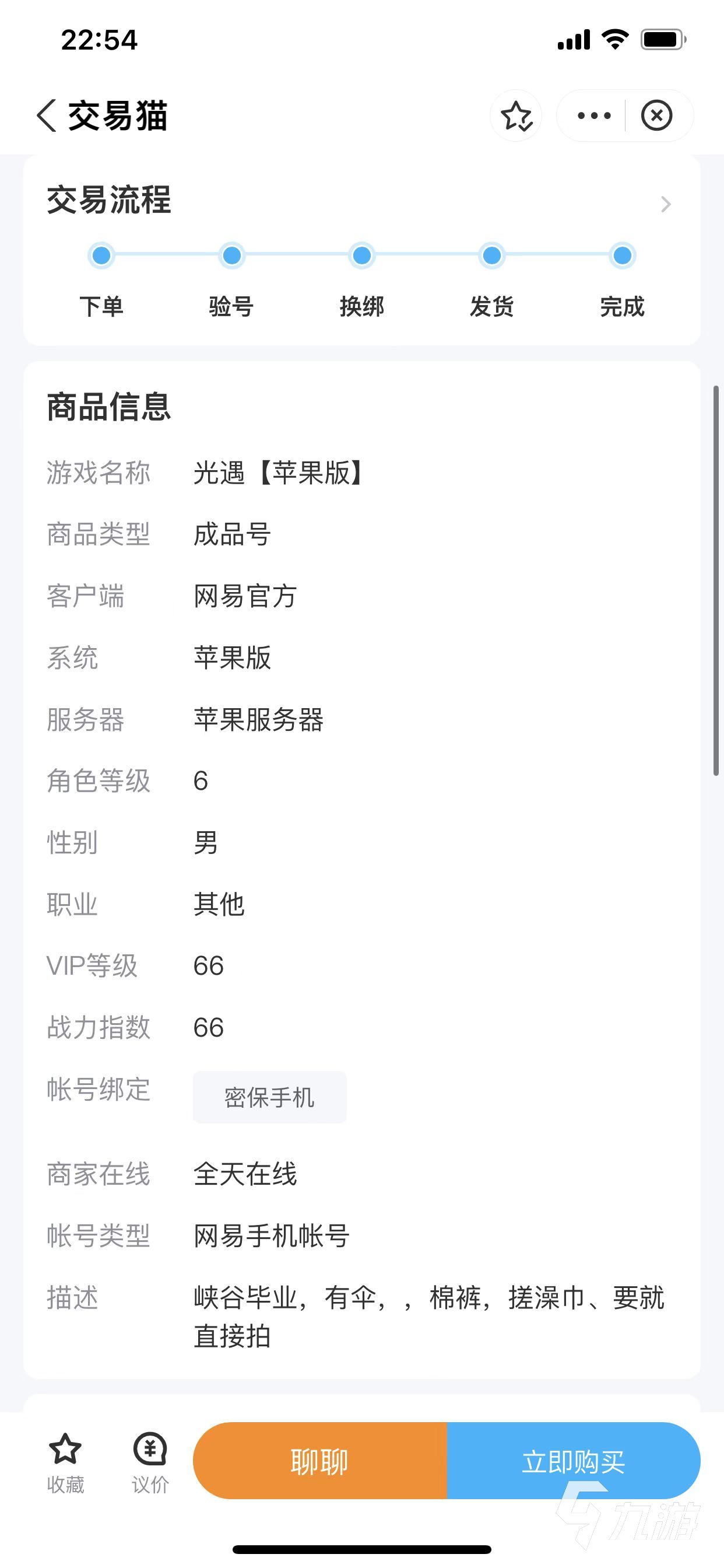 點進商品詳情,買家就可以看到多張游戲截圖與賣家的是否實名的認證了,還有商品信息的補充說明,其中包含著游戲等級、VIP等級、戰(zhàn)力指數(shù)等等,讓買家更直觀的了解到賬號資源的具體詳情,方便對比與購買。