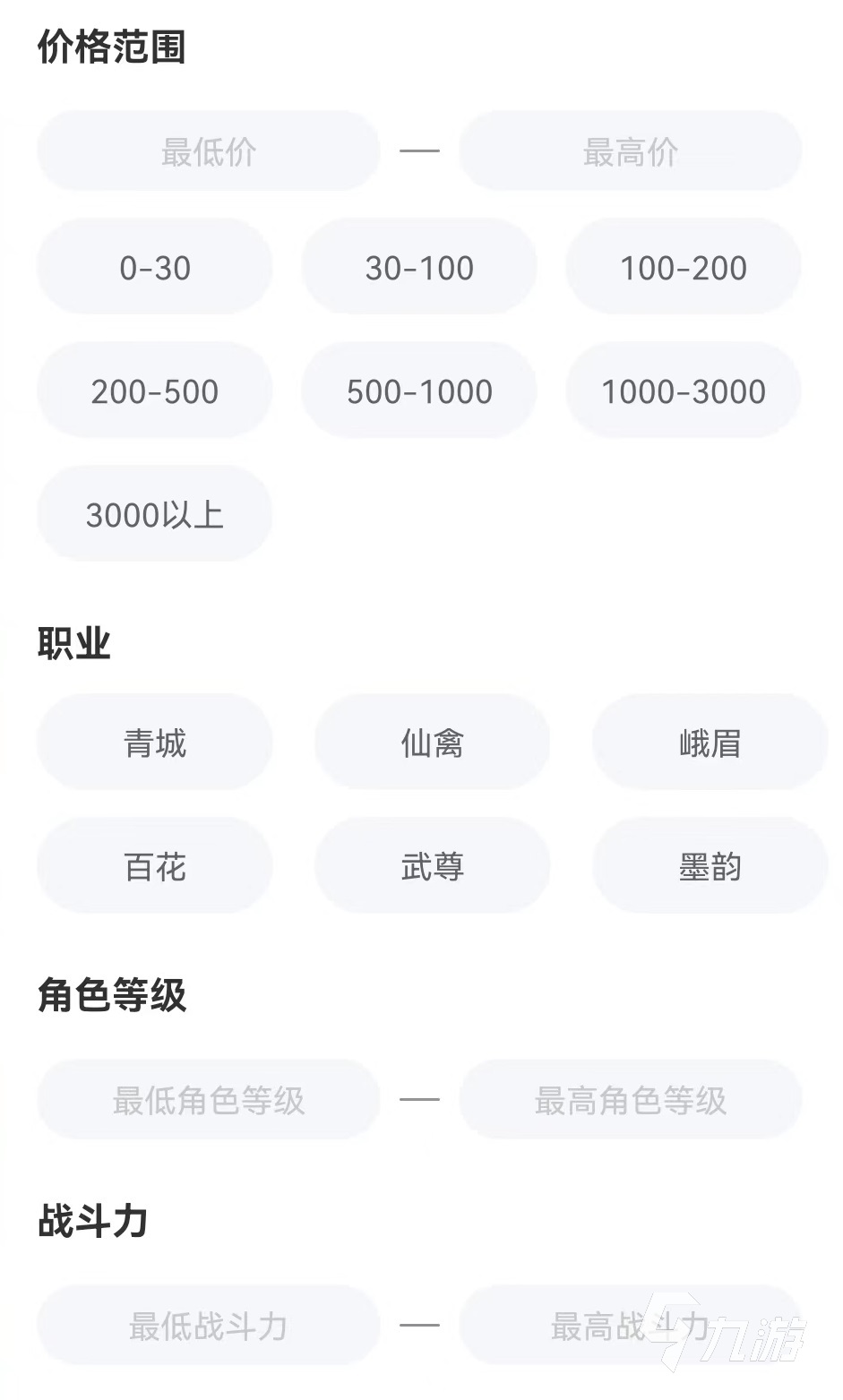 在這里購買蜀門賬號(hào),最方便的一點(diǎn)就是提供了很詳細(xì)的篩選服務(wù),因?yàn)槠脚_(tái)中上架賬號(hào)數(shù)量更多,不可能逐一去查看,這樣既浪費(fèi)時(shí)間又容易錯(cuò)過最佳選擇。而通過篩選服務(wù)就可以縮小范圍,用戶可以通過價(jià)格范圍、角色職業(yè)、等級(jí),當(dāng)前戰(zhàn)斗力數(shù)值等一系列內(nèi)容選擇出最符合要求的一小部分,接下來可以再逐個(gè)查看。