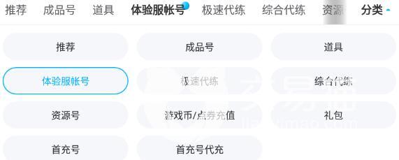 1.針對有這類需求的用戶,平臺專門開辟了一個區(qū)域,大家打開軟件后,在分類列表內(nèi),點擊體驗服專區(qū),其中含有大量符合要求的賬號,大家可以從中挑選一個買入,既省時又省力,要是玩起來不過癮,還可以再次出售。