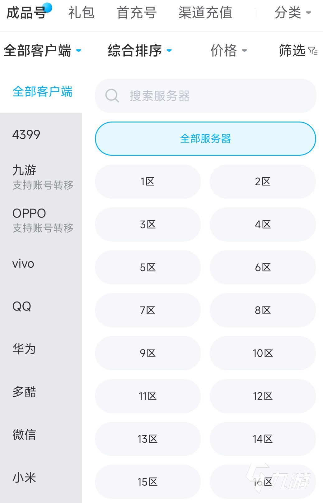 上文小編也提到了這款游戲支持很多客戶端登錄,所以在進(jìn)行賬號交易的時(shí)候,我們可以選擇的客戶端賬號也是非常多的,那么,如何精確的尋找到我們需要的某個客戶端賬號呢?最方便的方式就是通過篩選,不但可以篩選客戶端,而且還可以對某些個區(qū)服進(jìn)行篩選,非常的方便。