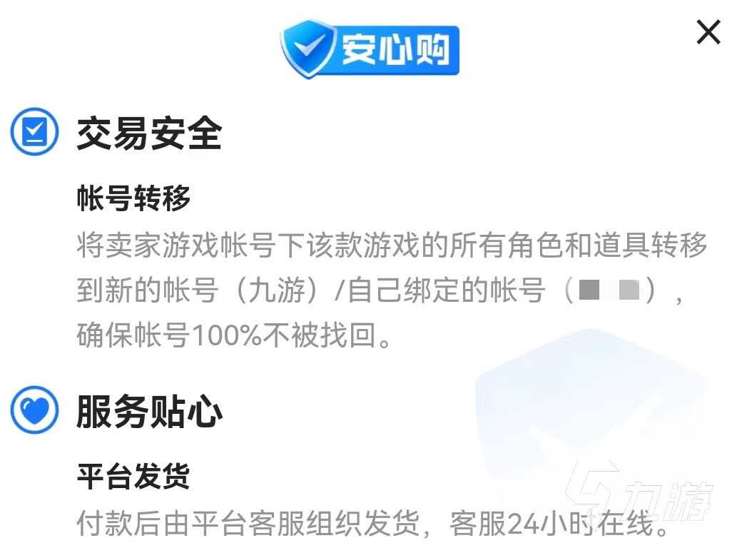 在該平臺(tái)中進(jìn)行成品號(hào)交易,能夠選擇當(dāng)前最安全的賬號(hào)轉(zhuǎn)移服務(wù),雖然只限于九游平臺(tái)賬號(hào),但是依然涵蓋了很多商品。賬號(hào)轉(zhuǎn)移可以避免各種風(fēng)險(xiǎn)出現(xiàn),因?yàn)槌鍪鄣倪^程不是傳統(tǒng)意義上的將賬號(hào)發(fā)送過去,而是將下面關(guān)于角色道具直接轉(zhuǎn)移到買家賬號(hào)下方,這樣雙方賬號(hào)不動(dòng),但是實(shí)際上的游戲內(nèi)容已經(jīng)完成了轉(zhuǎn)換。