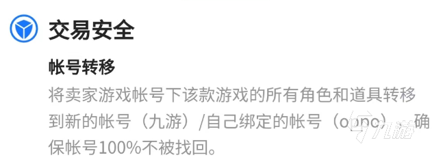 買賣賬號怎樣才能最大的規(guī)避風(fēng)險(xiǎn)呢?那就是干脆不進(jìn)行“賬號”交易,而是直接去買游戲中的角色,在交易貓部分九游渠道商品內(nèi)就可以看到“賬號轉(zhuǎn)移”的字樣,通俗易懂點(diǎn)就是不做賬號買賣,而是把買家看中的角色直接轉(zhuǎn)移到自己賬號旗下,所綁定的身份信息依然還是自己的,也避免大家兩個(gè)號來回切換,安全性還高,目前這也是交易貓獨(dú)一檔所擁有的交易技術(shù),在外是沒有的。