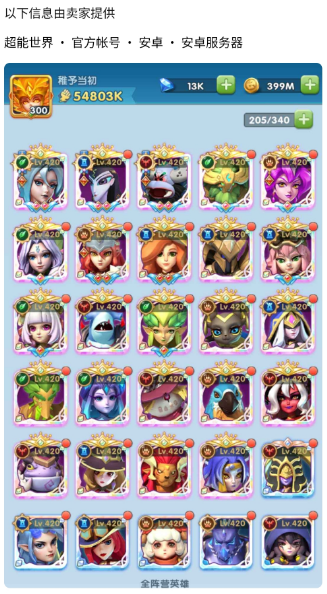 因為超能世界資源種類眾多,包括各種角色、星級、道具等等,這些加分項都是可以一樣一樣在詳情頁內展現(xiàn)出來,除了文字介紹之外還可以附帶各種截圖,讓別人能看到你賬號的亮點,這樣別人來找你進行交流時,就能省下很多不必要的重復回答。