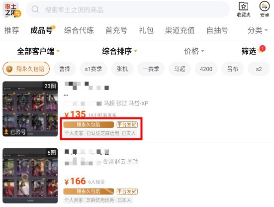 在購買游戲賬號的時候,可以挑選那些“贈永久包賠”服務的賬號,這類賬號的賣家信譽大多很高,不用擔心會出現(xiàn)找回的情況。查看商品信息的時候,也要仔細看看賣家傳圖以及“賣家說”,避免踩坑。