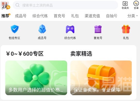 以買號為例,交易貓為率土之濱設立的賬號交易專區(qū),有0~600元的專區(qū),也有賣家精選商品。各種類型的賬號應有盡有,成品號、禮包號、自抽號,可以滿足你的各種買號需求,能快速檢索到目標賬號,或者輸入關鍵詞查詢。
