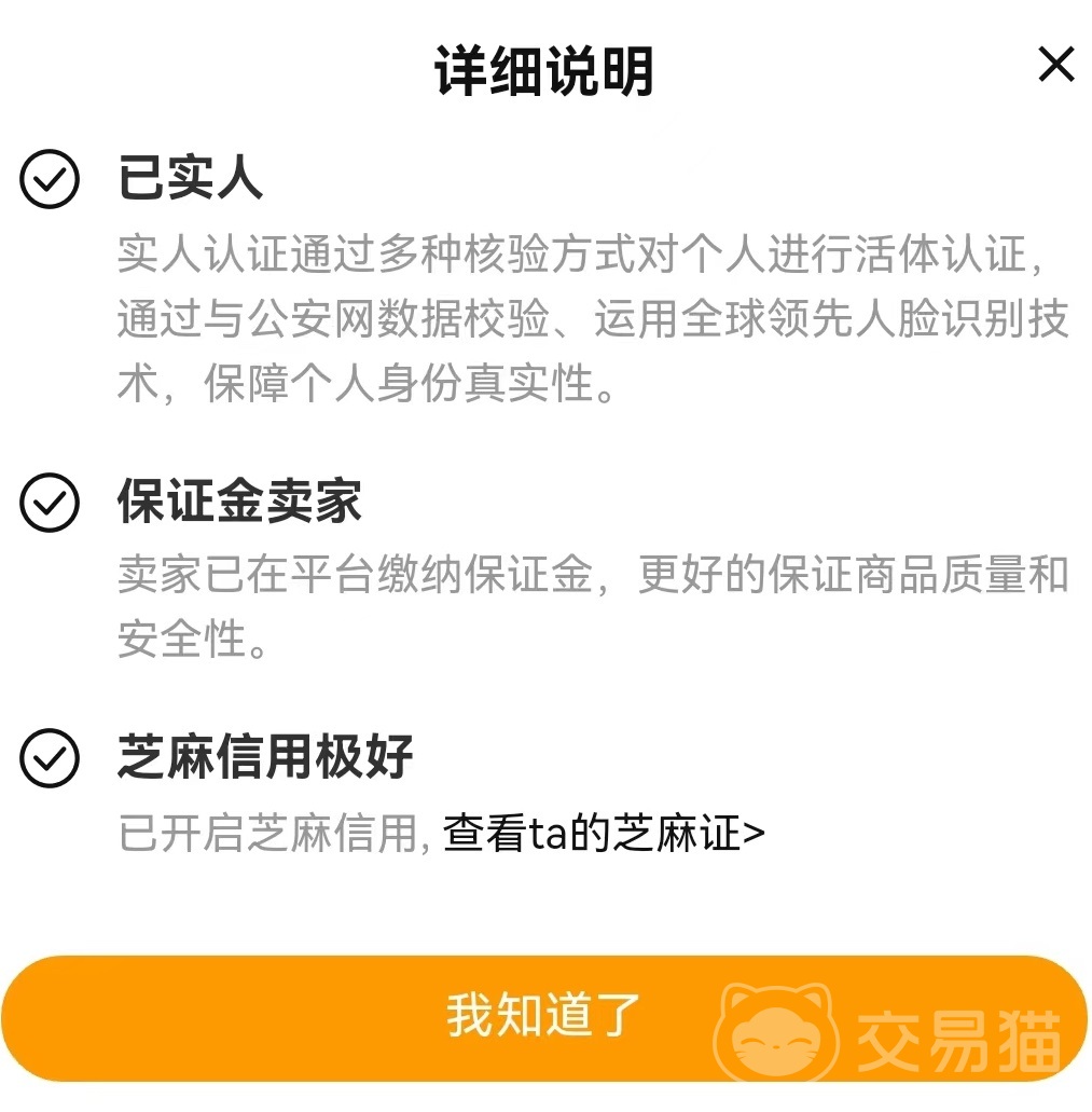 平臺(tái)對(duì)于出售者的認(rèn)證非常嚴(yán)格,大家在賬號(hào)中直接就能看到當(dāng)前出售者的身份和芝麻信用情況,以及是否進(jìn)行過(guò)實(shí)人制認(rèn)證。賣家認(rèn)證越嚴(yán)格,安全性方面就越高,尤其是那些芝麻信用好或者是繳納過(guò)保證金的誠(chéng)信賣家更是值得信賴。通過(guò)這些嚴(yán)格認(rèn)證,能夠?qū)⒑芏嗖涣冀灰渍咧苯訐踉陂T外,極大凈化了平臺(tái)交易環(huán)境,讓用戶可以放心選擇。