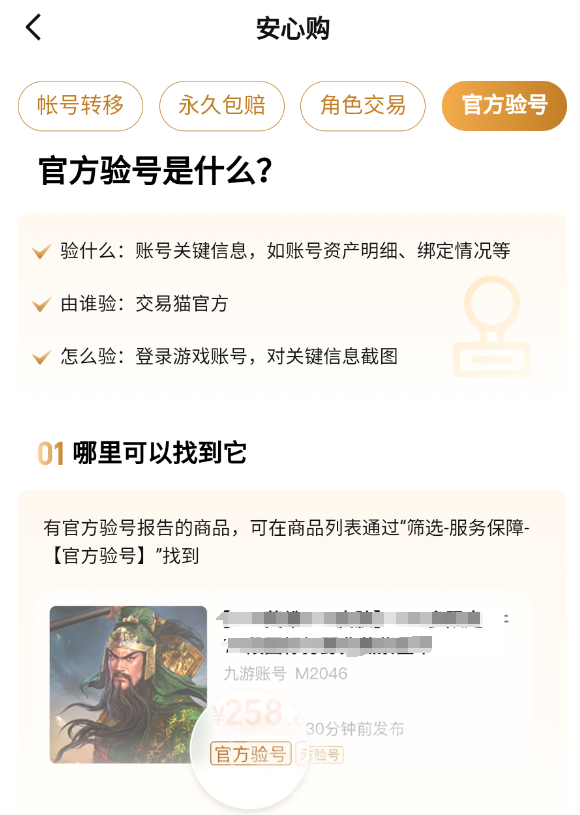 在交易貓上賣cf小白號,還能勾選平臺設置的驗號服務,委托客服對賬號進行驗證,買方下單完成還能讓客服進行二次人工驗號提供截圖。通過“已驗號”可以收獲一份官方蓋章的驗號報告,幫助買家了解賬號的真實情況,收獲更多用戶的青睞從而促成交易更快的達成。