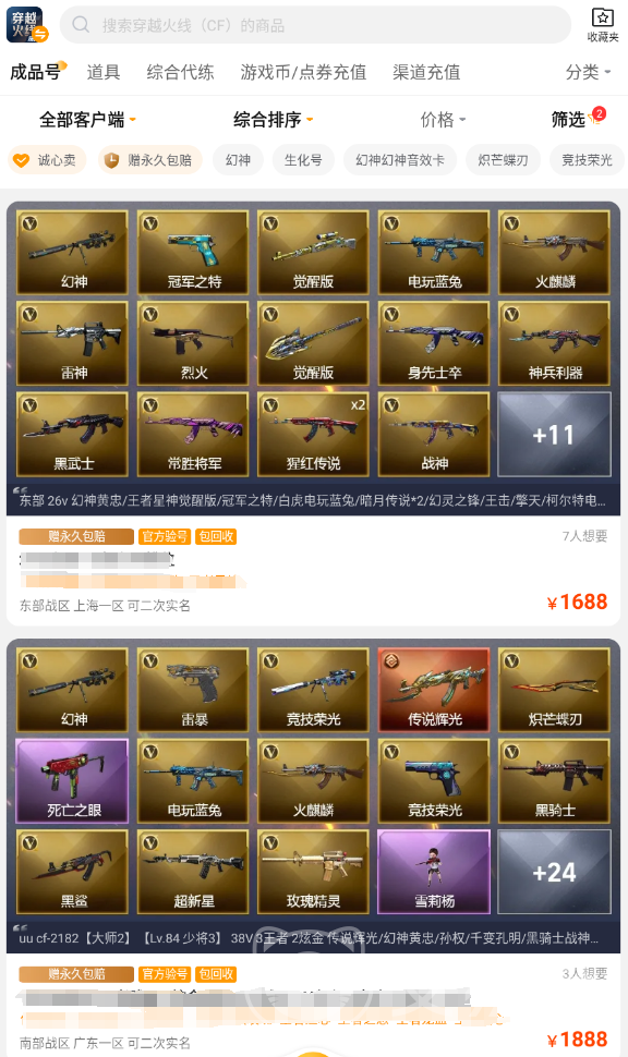 作為賣家,自然想要將自己的賬號以滿意的價格出售。不過因為小白號內的資源與武器價值各異,不少賣家摸不準價格,擔心掛價太低賣得虧,又怕亂定價導致賬號賣不出。那么就很建議各位到交易貓活躍的cf專區(qū),通過靈活篩選與搜索的功能,對比其他賣家掛售的小白號,讓賬號的定價更符合市場規(guī)律。