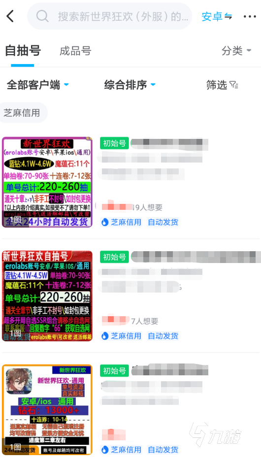 2、大家可以直接通過搜索,來到針對新世界的交易專區(qū)內(nèi),獲取各式各樣的商品。這些不同的游戲商品,都將為玩家們帶來不一樣的體驗,成品號主要是表現(xiàn)在戰(zhàn)力強大以及裝備豐富方面,而初始號則可以讓玩家們自由選擇去獲取游戲當(dāng)中的不同道具,相對來說讓玩家的自主性選擇更多。