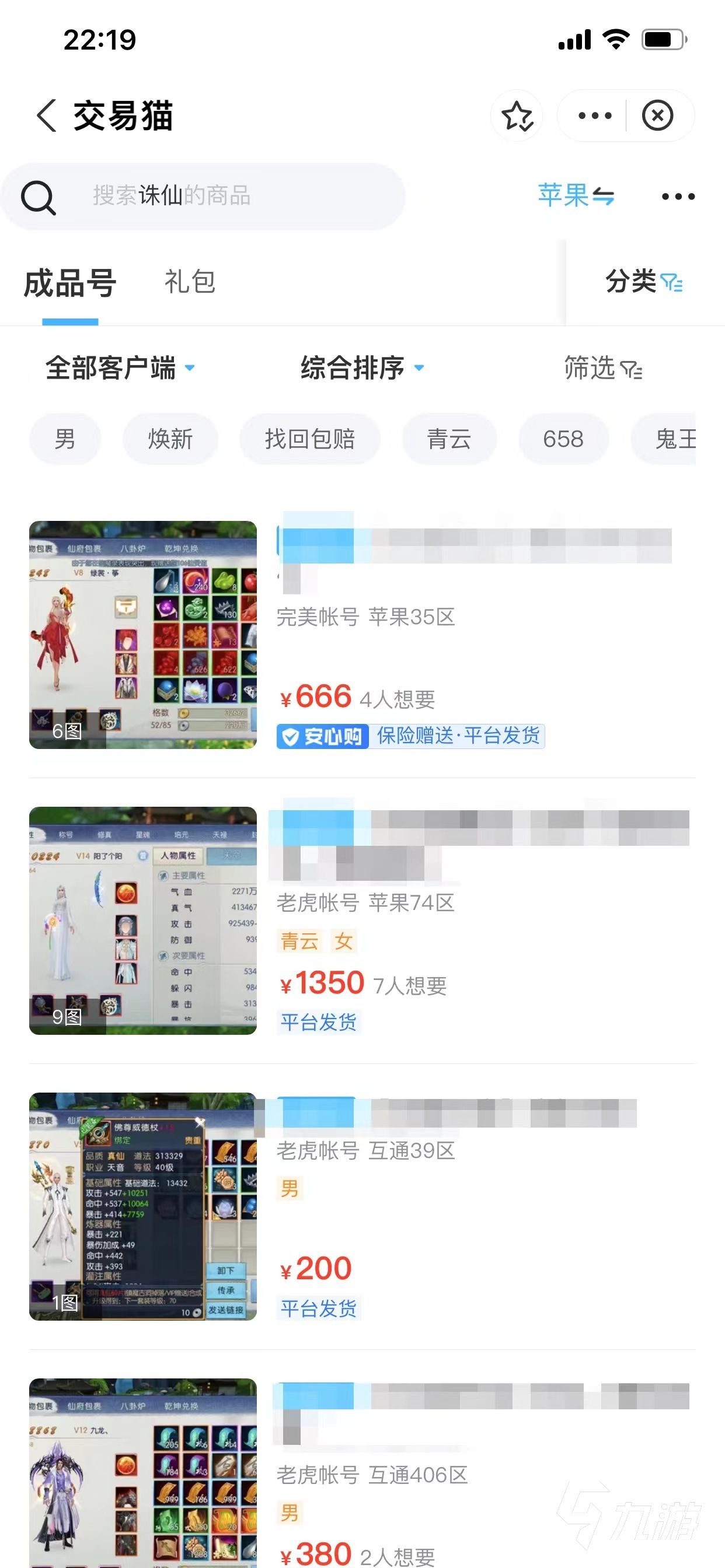 來源: 極光 作者: 李累 2023年01月16日 17:17誅仙作為古風(fēng)大IP游戲,經(jīng)典的劇情加上改良的戰(zhàn)斗系統(tǒng)讓玩家們的熱情始終高漲。近期有小伙伴在問誅仙游戲賬號交易平臺哪個正規(guī),小編剛好也在關(guān)注這個類型的問題,今天就為大家?guī)硪豢羁孔V的誅仙賬號買賣平臺:交易貓。在交易貓中用戶們可以隨意瀏覽海量賬號,全透明的價格更方便對比。