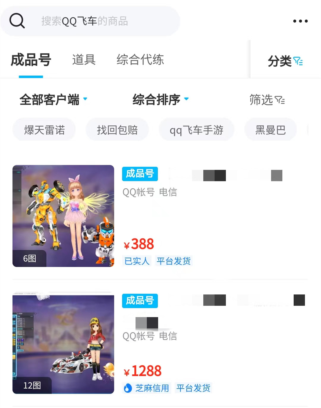 首先在交易貓搜索“qq飛車”你就會看到有非常多的賬號供你選擇,各種類型的賬號基本都可以在這里找到,不僅買家的選擇性更多,你也可以通過對比商品信息了解當前的行情,讓自己買到更便宜優(yōu)質的賬號。