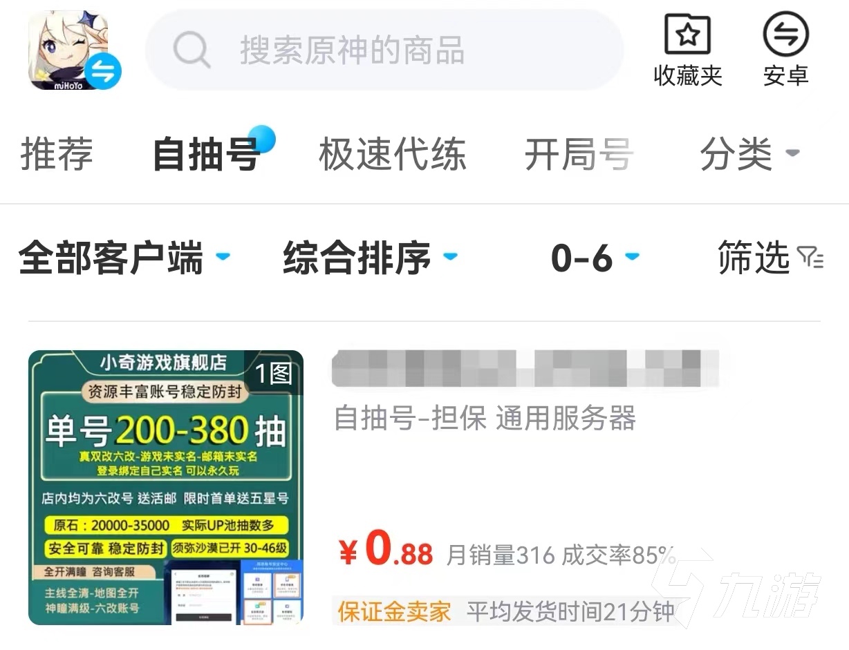 很多抽卡游戲的自抽號都是通過簽到方法使得賬號中獲得大量角色抽卡的資源,一般售價(jià)都比較低,剛?cè)肟拥耐婕乙部梢再I這類賬號,游戲前期體驗(yàn)也會更佳。用交易貓下單原神自抽號是不錯(cuò)的選擇,平臺原神專區(qū)內(nèi)成品號、開局號、自抽號等不同類型賬號都有分開排列出售,可以直接搜索需要金額的賬號,低至一元的賬號也是有賣的,下單就可以安排訂單發(fā)貨。