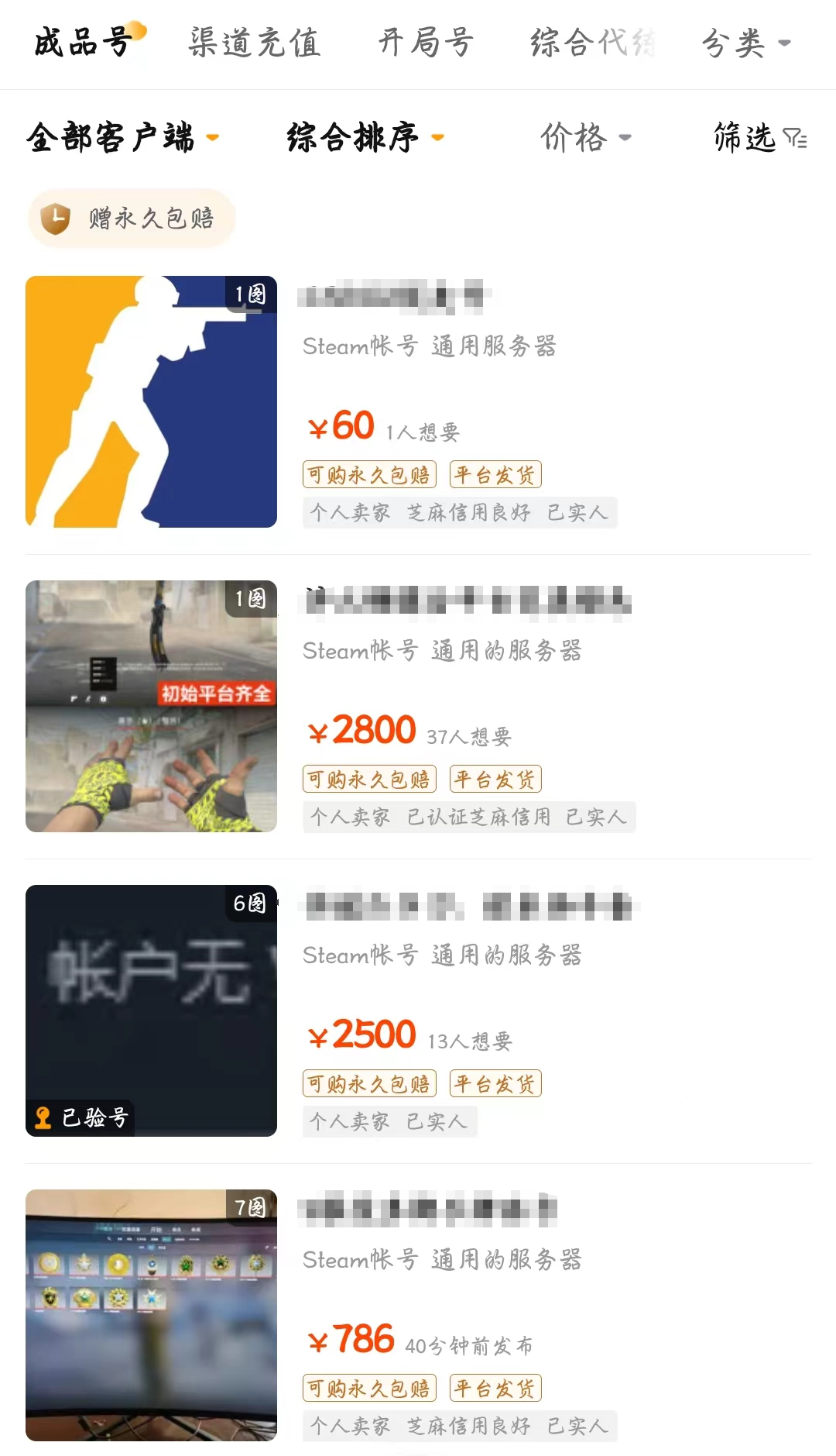 點(diǎn)開交易貓平臺搜索,直接有csgo的游戲?qū)^(qū),在這里有大把的游戲賬號提供給大家,各種品質(zhì)各種價(jià)位的都有,如果大家是想要售賣自己賬號的話,就可以觀摩一下其他賣家是怎么賣的,學(xué)習(xí)一下經(jīng)驗(yàn),后續(xù)好上手售賣自己的賬號。
