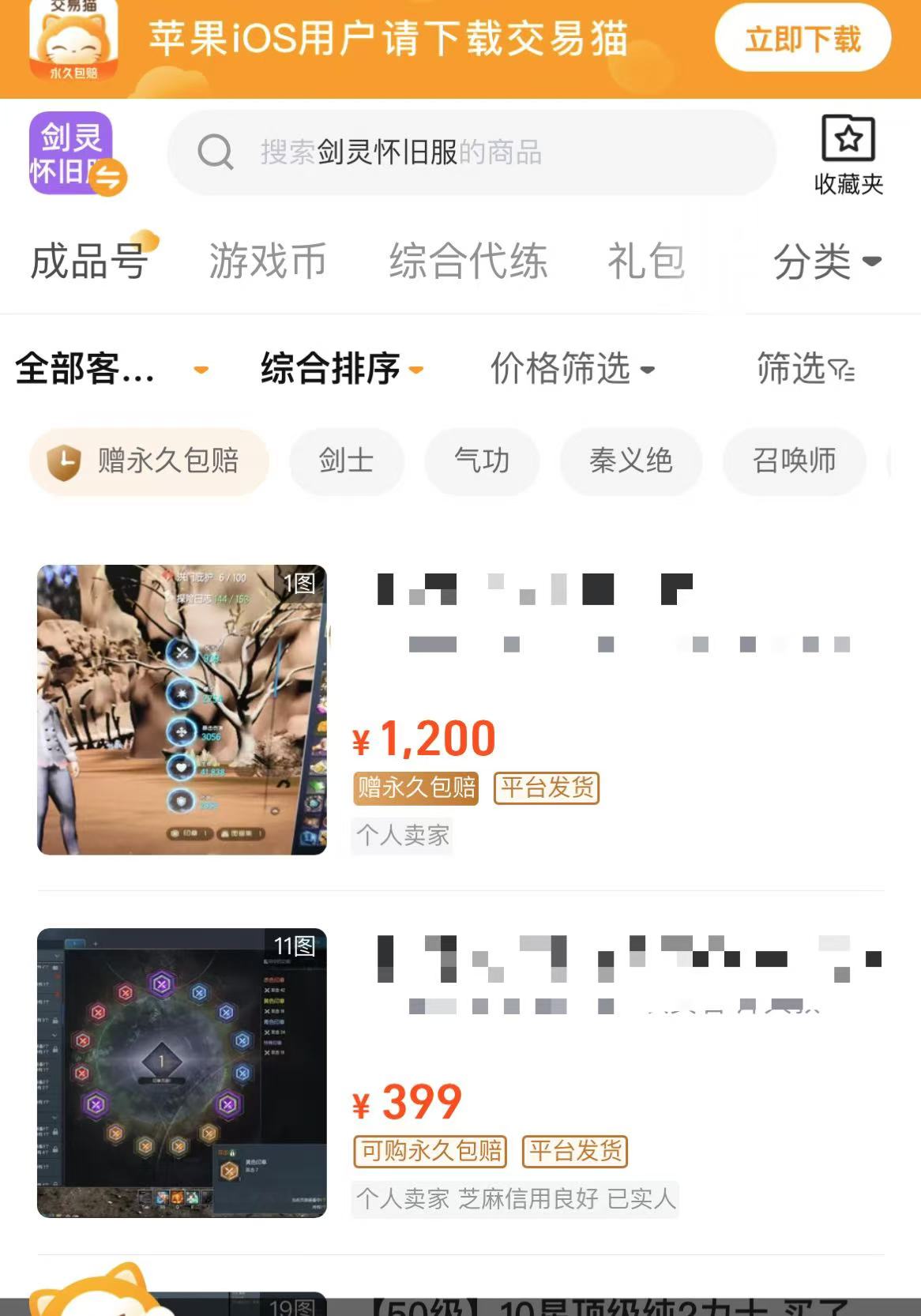 交易貓作為知名的游戲交易平臺(tái),擁有海量的游戲賬號(hào)資源。在其搜索欄輸入“劍靈懷舊服賬號(hào)”后,瞬間呈現(xiàn)出琳瑯滿目的賬號(hào)信息。從不同等級(jí)、職業(yè),到擁有各種稀有裝備和道具的賬號(hào),應(yīng)有盡有。這豐富的選擇讓我能夠根據(jù)自己的喜好和游戲目標(biāo),精準(zhǔn)篩選出心儀的賬號(hào)。