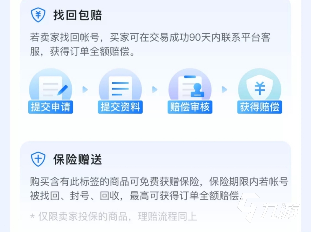 除了優(yōu)質的售前服務外,交易貓的售后也很優(yōu)良。平臺推出安心保險,針對部分商品贈送免費保險,買家也可以根據(jù)自己的需要在下單的時候自行選購保險。保險分為60天保障期和90天保障期,不同保障期對應的保費不一樣,購買保險以后大家就不用擔心對面找回賬號了,可以放心使用新買的賬號。