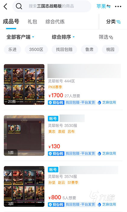 2、賬號(hào)類(lèi)型多樣。交易貓平臺(tái)匯集了不同服務(wù)器端口、角色等級(jí)、五星武將角色的賬號(hào)。這些賬號(hào)價(jià)格優(yōu)惠,物美價(jià)廉,性?xún)r(jià)比超高。海量賬號(hào)在線(xiàn)快速篩選。