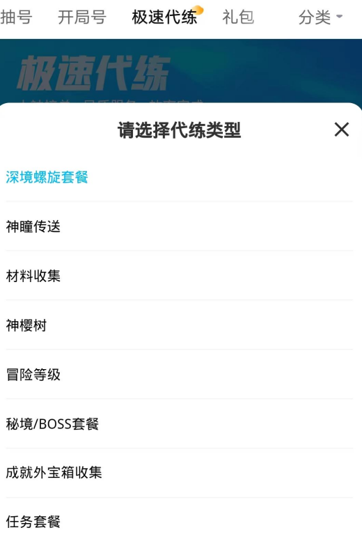 除了購買帶有自選角色、抽數(shù)等資源的原神初始號,玩家們還可以在這里尋找合適的代練。無論是比較困難的深境螺旋還是沒有時間肝的地圖寶箱和圣遺物,都可以在交易貓中找到靠譜的代練,幫自己的賬號提升探索度和冒險等級。