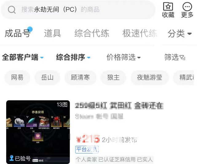 玩家們在購買游戲賬號的時候,其實最關(guān)心的都是性價比,性價比越高,我們所能買到的賬號價值就會越高。玩家們可以直接下載交易貓,里面會有專門的永劫無間游戲?qū)^(qū),我們在首頁搜索即可進入其專區(qū),之后就可以根據(jù)自己的需求進行一鍵篩選,會有多種賬號類型,成品號、初始號在這里都是能夠買到的。