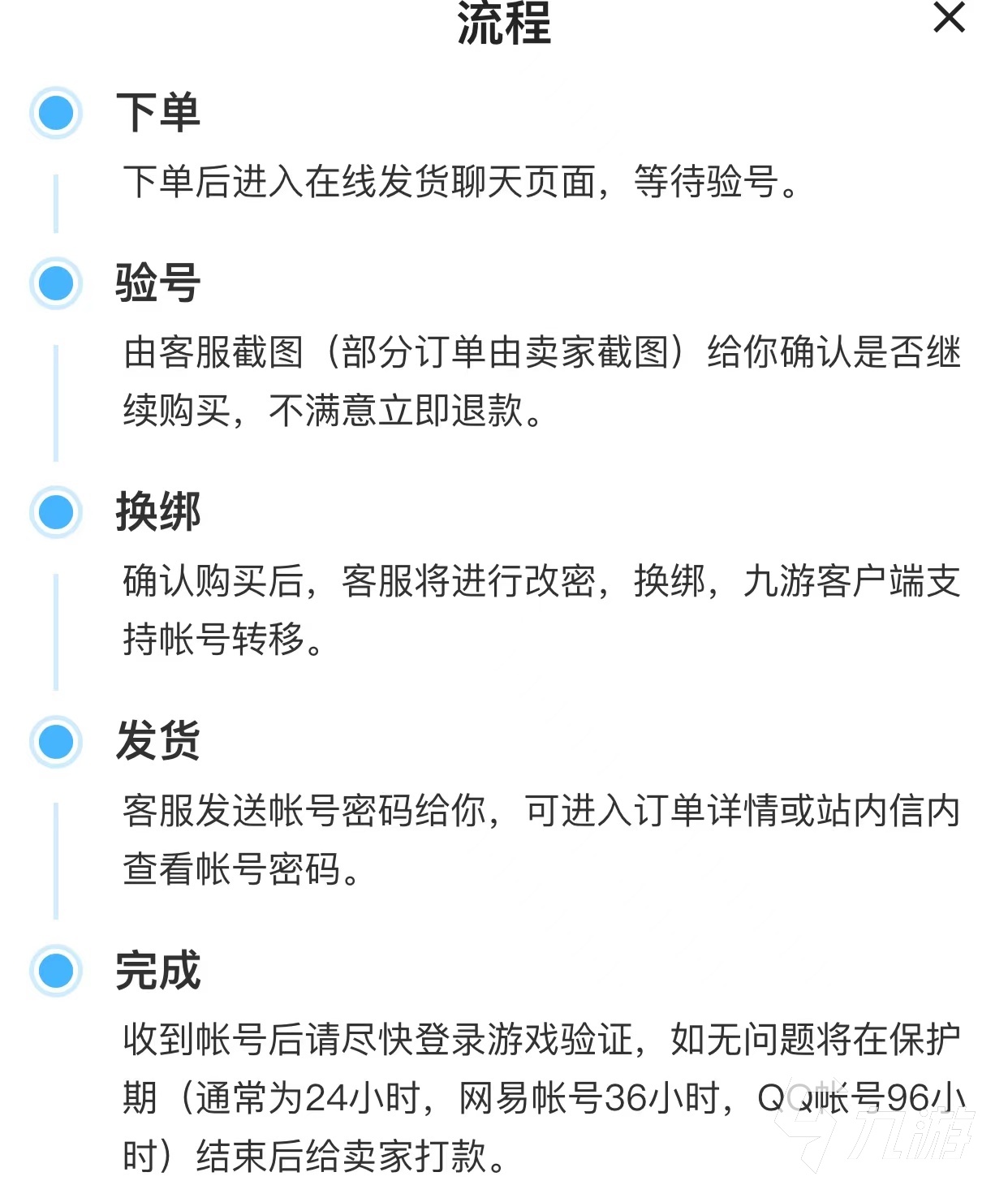 大多數(shù)小伙伴們對于交易過程都是非常擔心的,因為并不了解對方的人品,還涉及到了錢款和換綁的問題。交易貓也想到了這一點,在買家拍下賬號后,就可以進入到在線發(fā)貨的頁面了,客服登錄賬號截圖確認交易后,進行換綁修改密碼等操作,完成交易后還有保護期,保護期結(jié)束才會給賣家打款。