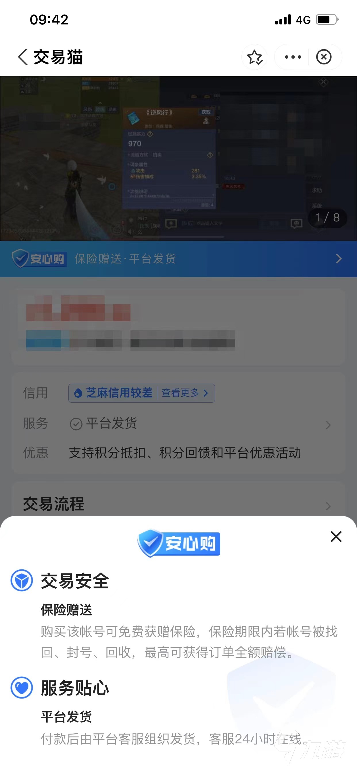 有一大部分用戶在交易后,因為自己不是一手賬號的擁有者而擔心賬號被找回。對于這些用戶來說,可以選擇帶有安心購標識的商品,交易貓中的部分賬號是帶有安心購服務(wù)的,如圖片所示,購買賬號后可以免費獲贈一份保險,在保險期內(nèi)賬號被找回,最高可以獲得訂單全額賠償。