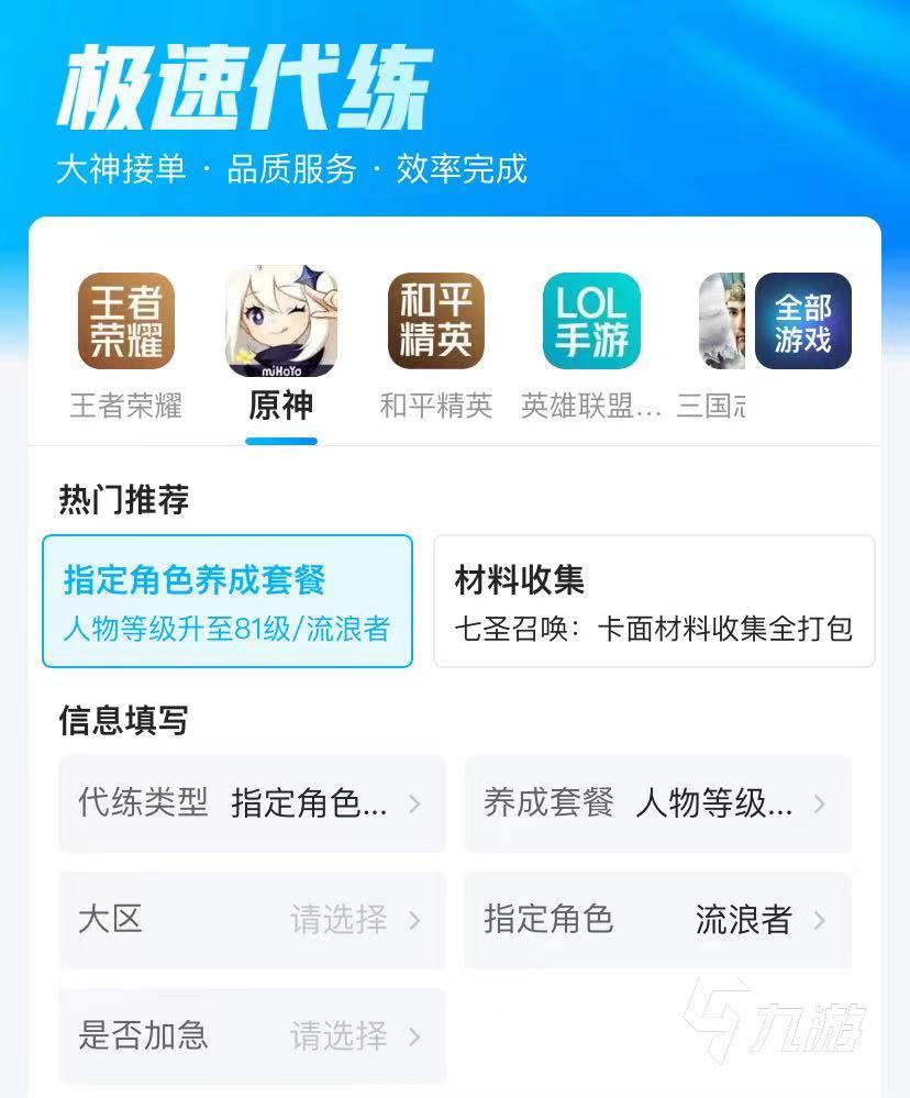 當(dāng)然,在購買了胡桃開局號(hào)之后,如果沒有足夠的時(shí)間用來提升練度,那么也可以通過交易貓尋找合適的代練。無論是收集養(yǎng)成材料、指定角色養(yǎng)成套餐、還是攻略深境螺旋,這里都能夠滿足你的需求!