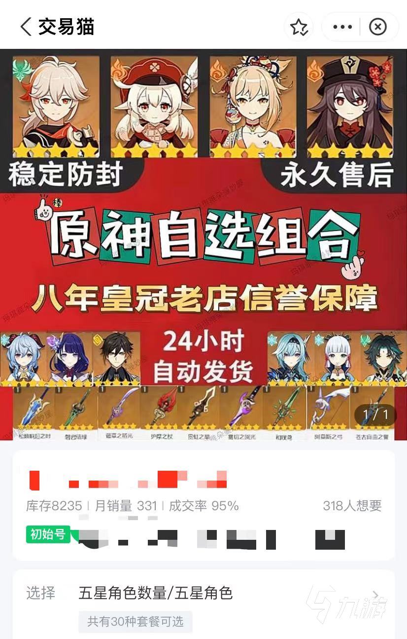 胡桃目前可以算是原神當(dāng)中一線火屬性輸出角色,再加上元?dú)馇纹さ男愿瘢裢馊侨讼矏?。如果想要擁有這一角色的賬號(hào),只要在交易貓搜索欄中輸入“原神”,并選擇“開局號(hào)”標(biāo)簽,就能夠看到大量開局號(hào)即初始號(hào)商品。點(diǎn)擊某個(gè)商品進(jìn)入,就可以自由選擇想要的初始號(hào)賬號(hào)角色了,其中就包含大家期待的胡桃。
