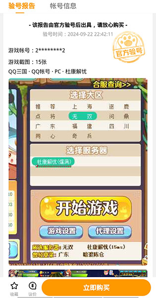 第二點(diǎn),官方出具驗(yàn)號報(bào)告。為了保證賬號信息真實(shí),在購買qq三國賬號之前,買家可以申請驗(yàn)證賬號,由官方客服驗(yàn)證號碼,然后發(fā)布重要信息截圖,確定賬號安全驗(yàn)證內(nèi)容等。