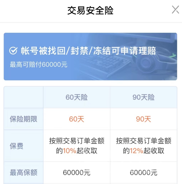 在最后賬號交易結(jié)束后,如果該賬號有保險措施的話還可以購買保險,在購買完保險之后就會在保險期間內(nèi)保障玩家的賬號安全,在之后如果出現(xiàn)了賬號被找回等情況就可以向平臺進(jìn)行申訴處理。就這套流程看下來,可以說是沒有一點漏洞。