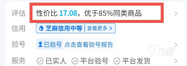 交易貓的資源全面,我們可以多家對比,選擇一個性價比最高的進行購買,這個性價比也不用大家去判斷,在賬號詳情界面內(nèi)我們可以看到官方給的評估信息,根據(jù)同類型的賬號進行對比,為我們評估出當前賬號的性價比,我們肯定是要優(yōu)選那些性價比高的,買到的賬號也會更實惠,玩家們可以輕松的完成交易。