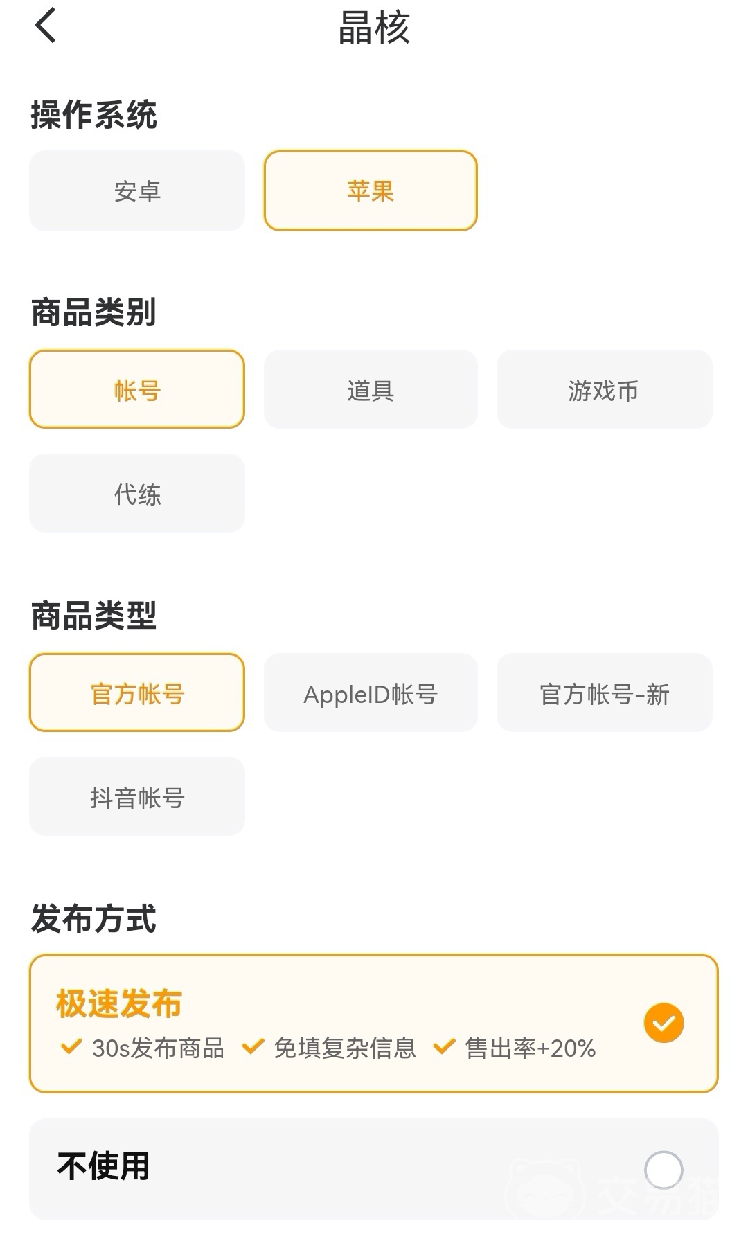前期使用的注冊和認證步驟簡單,提供芝麻信用等級和實人認證等相關(guān)資料就好。接著在界面下方的賣賬號當中找到晶核游戲的專區(qū),下面平臺就會提問一些賬號信息及其他內(nèi)容,要大家填寫相關(guān)內(nèi)容來回答,你的流程操作十分簡單,基本都是一問一答,不需要大家用幾百字的段落來描述你的游戲賬號,按照系統(tǒng)給出的提示進行填寫即可,沒有什么繁瑣的操作。