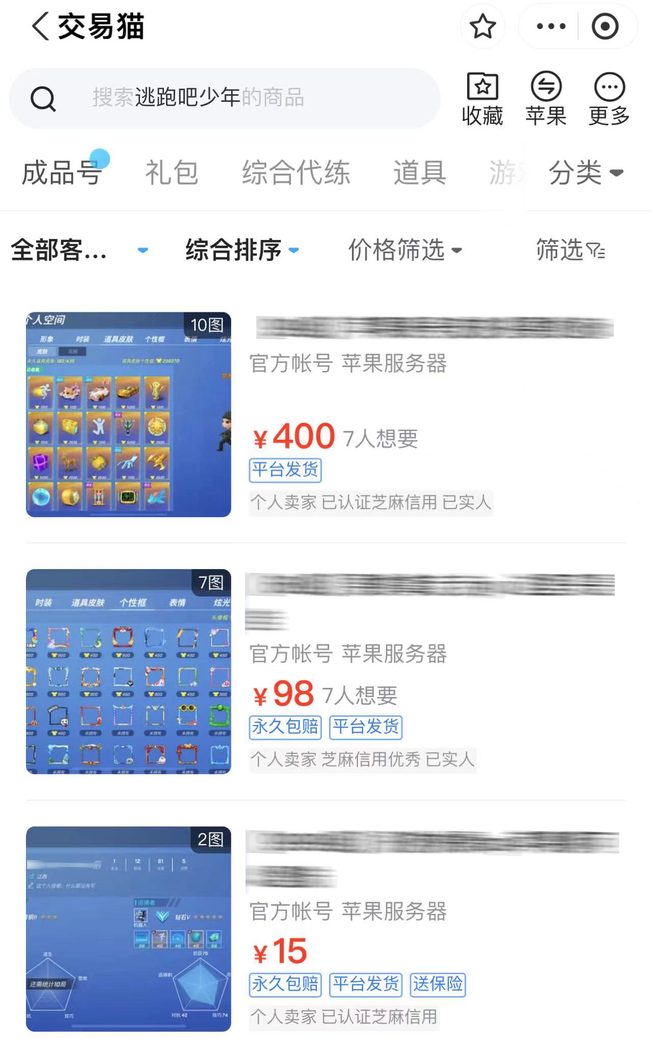 其實買賣游戲賬號的現(xiàn)象在這個游戲里很常見,畢竟不是每個人都特別有時間去培養(yǎng)一個賬號,然后花了很多時間培養(yǎng)賬號的人也希望能夠獲得對應(yīng)的回報。逃跑吧少年賬號去哪交易好呢?交易貓便可輕松實現(xiàn)買賣游戲賬號的目的,并且提供了良好的服務(wù),能夠為買賣雙方都提供安全保障,還提供了許多便利,可以大幅度提升成交率,讓買賣雙方都開心。