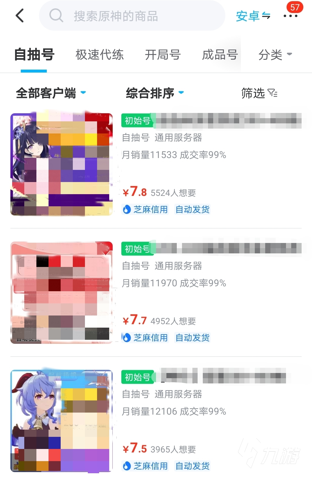 交易貓平臺上對原神各類賬號都做了劃分,自抽號也有專門的一欄,便于買家挑選。平臺上自抽號商品數(shù)量多、類型豐富,帶幾十抽、上百抽的賬號都有在售賣,應(yīng)該能滿足所有打算購買自抽號買家的需求。