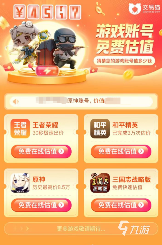 2、交易貓平臺當中,不僅僅只支持各種比較初級的王者號進行出售。如果玩家手中的游戲賬號實力非常強,同時還擁有了大量角色、皮膚,這一階段在進行出售前,最好是使用憑條當中的估值功能來檢測一下具體的價值,盡量避免在交易的過程當中出現(xiàn)虧損的情況發(fā)生。