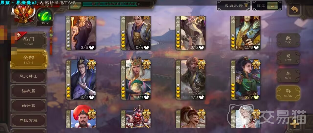 三國殺玩游戲?qū)π率謥碚f最大的問題是升級比較慢,游戲玩法解鎖的更慢,而聯(lián)機(jī)體驗的就是技能簡單的劉備,呂蒙,張飛等等角色,非常枯燥。而神奇的武將必然技能非??鋸?,基本上氪金才能獲得。正好在交易貓有很多玩家退游出號,所以不妨前往交易貓選擇一個有自己喜歡武將的賬號入手來豐富游戲體驗。