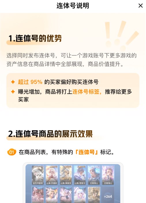有的時候同一個賬號下會有多款游戲,交易貓也支持發(fā)布“連體號”,一個賬號下多個游戲的資產(chǎn)可以同時出售,這樣極大了提升你手頭賬號的價值。